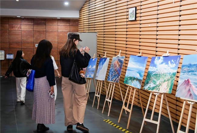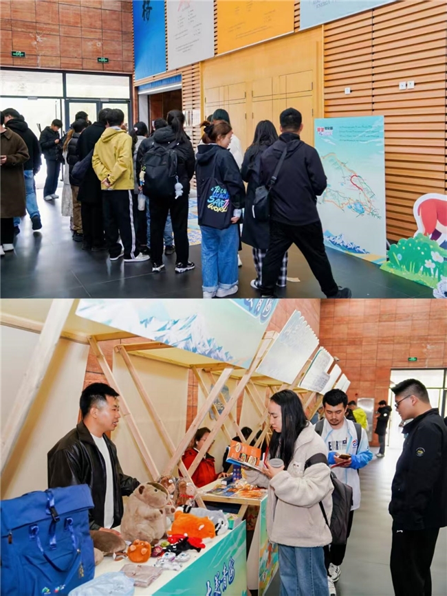 场外同步设立的“青海好物市集”,成为活动另一处人气焦点。师生们驻足品鉴,不少人通过拍照、录制短视频等方式,自发记录并分享这场独特的文化体验。摄影展区,一幅幅作品宛若一扇扇“秘境之窗”,引领观者沉浸式“云游”可可西里的广袤、黄河源头的瑰丽与草原牧歌的悠然,激发了大家对青海精品旅游线路的浓厚兴趣。拍照打卡区,以雪山花海为背景,融入了萌趣的雪豹、牦牛等地域元素,高度契合青年群体的审美与分享习惯,成为现场互动打卡的热点。